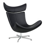 Fotel ARNI HIGH z podnóżkiem czarny - ekoskóra, stal szczotkowana