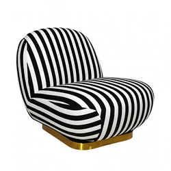 Fotel VENICE tkanina pepitka biało - czarna ekoskóra czarna - złota podstawa